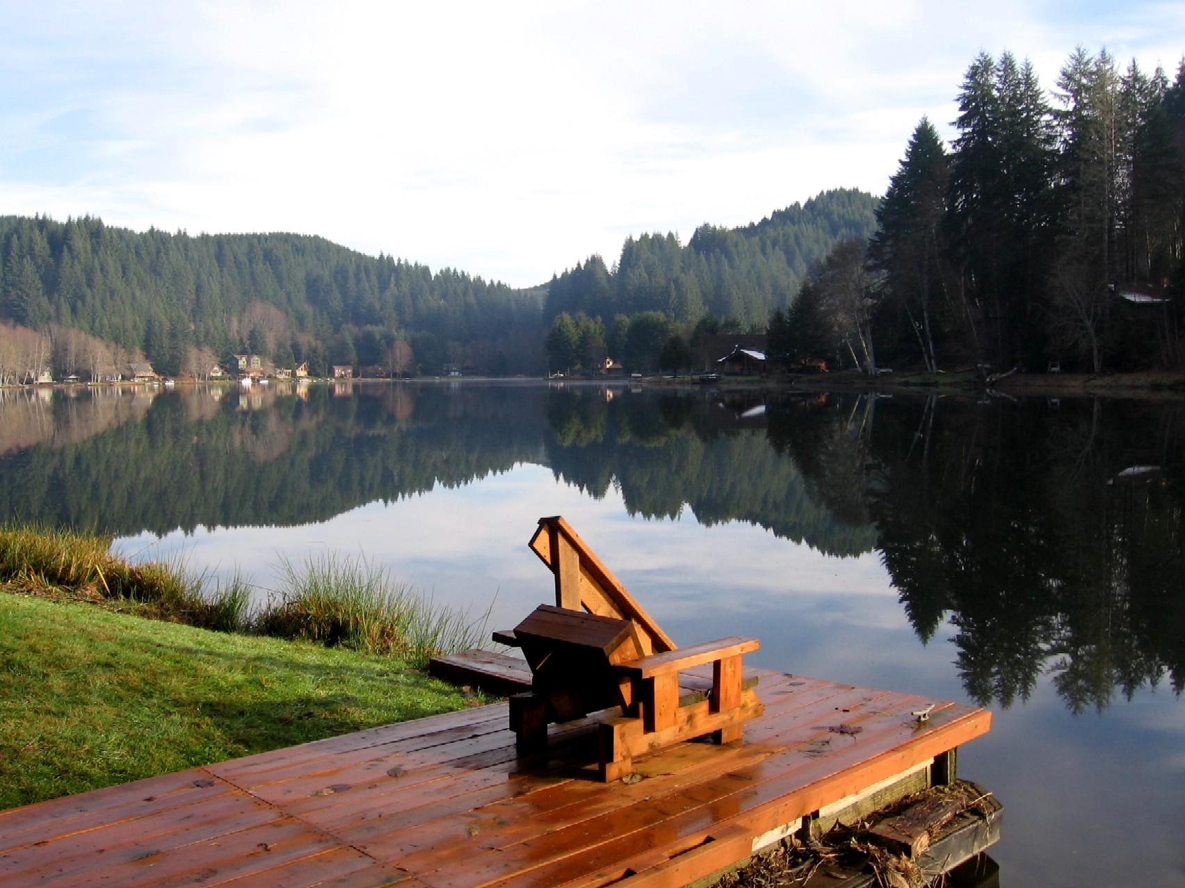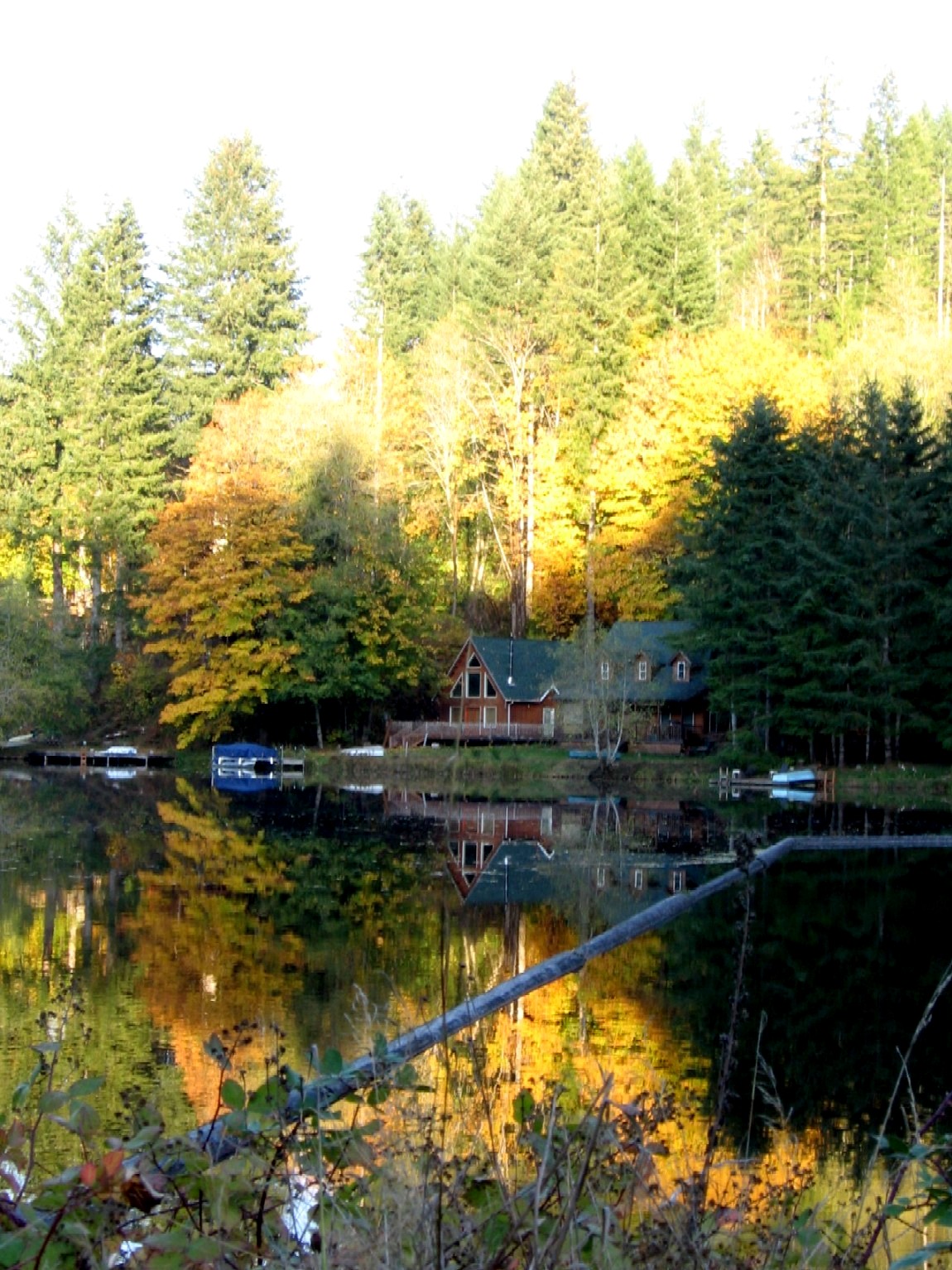Our story of finding Fishhawk Lake was one of divine intervention. My husband and I had a “wishlist” and one of our mutual wishes was to find a “cabin on a lake” someday. So, one day in 2002, I’m standing in a Kinko’s and next to me is a man with this really wonderful watercolor rendering of this cabin….on a lake. His wife had painted it of the cabin they owned at Fishhawk Lake in Birkenfeld, OR and they were going to make flyers to put up in his business with the intention of selling it.