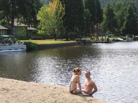 Around the clubhouse area are some perfect spots for several things to do. We have a paved tennis court that also houses a basketball hoop. There’s a volleyball net on the expansive grassy area and a terrific playstructure for kids of all ages–I’ve gotten on one of the swings a few times myself and enjoyed the lake views from a different vantage point! There’s a small beach and the little kids can walk right into the lake as it is shallow enough and has steps that can be used…but there is no lifeguard on duty…just an FYI. You can rent the clubhouse itself for retreats, weddings/receptions as there’s a full kitchen and tables/chairs available and it’s reasonably priced. Many of the social events occur at the clubhouse or near it and it’s an easy walk, bike ride or drive from anywhere around the community.