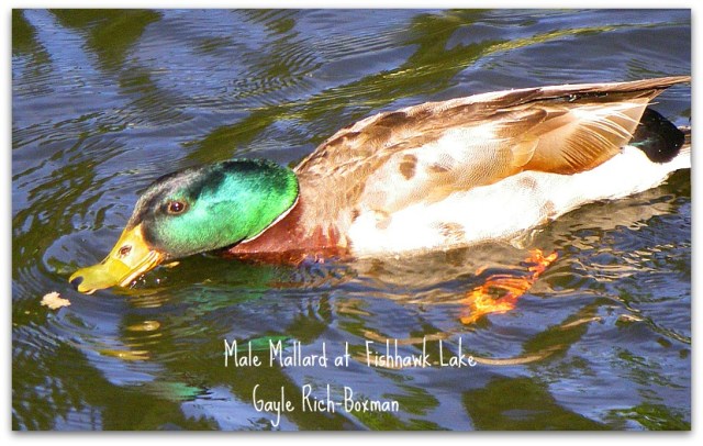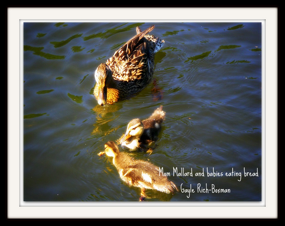 Papa Mallard was nearby, but not too close! Notice the bread just out of his reach. (He’s sure giving me the eye).