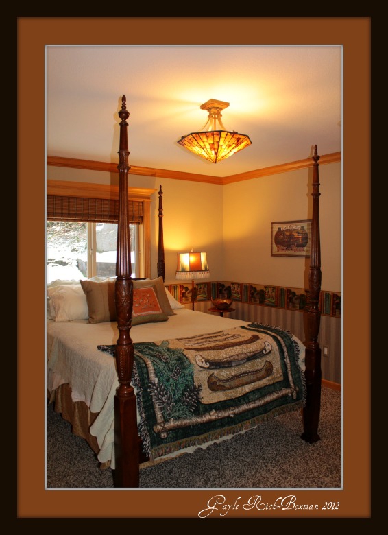 I’ve seen homes decorated with really cool old fishing tackle, and rustic antique cooking utensils. Mixing these things with the background of wood, leather or fur makes it really easy to go a variety of directions. If you’re going with a more rustic or traditional cabin look, you don’t want too much color as it makes it feel very contemporary or very artsy and it seems that the cabiny/lodge feel leans more towards earth tones with either whites, creams, greens, reds or yellows being accent colors.